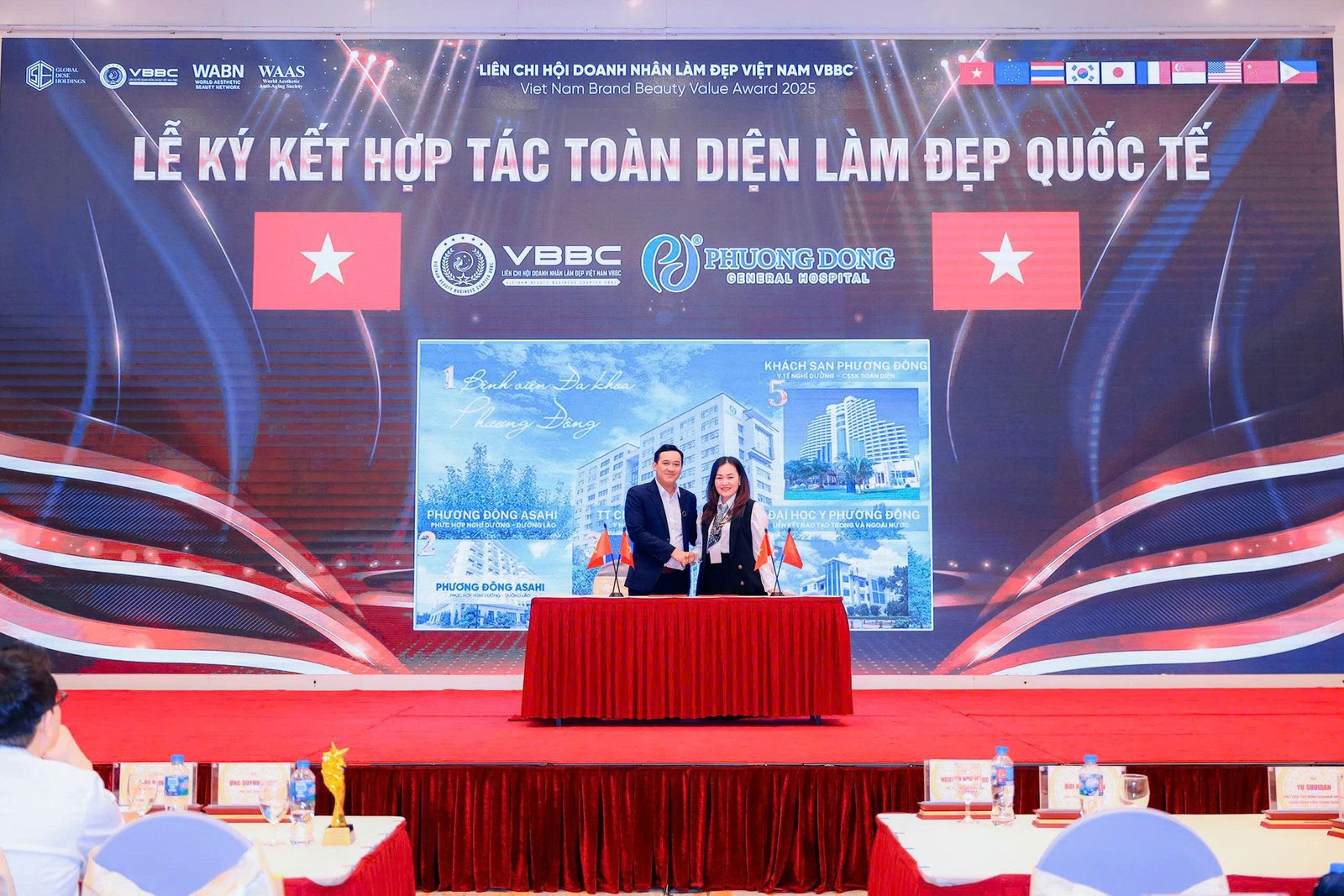 Đáng chú ý, trong khuôn khổ chương trình, Ông Nguyễn Ngọc Huy (VBBC) đã ký kết hợp tác toàn diện làm đẹp quốc tế cùng Bà Phạm Phương Anh – đại diện Bệnh viện Phương Đông (Tổ hợp Y tế – Trường Đại học Y Phương Đông). Hoạt động này mở ra thêm các cơ hội giao lưu học thuật, kết nối chuyên môn và phát triển hệ sinh thái làm đẹp theo hướng hội nhập.