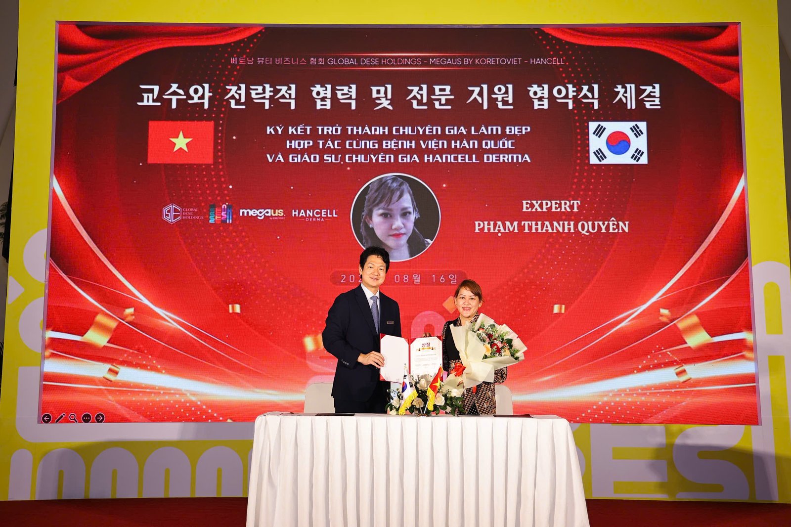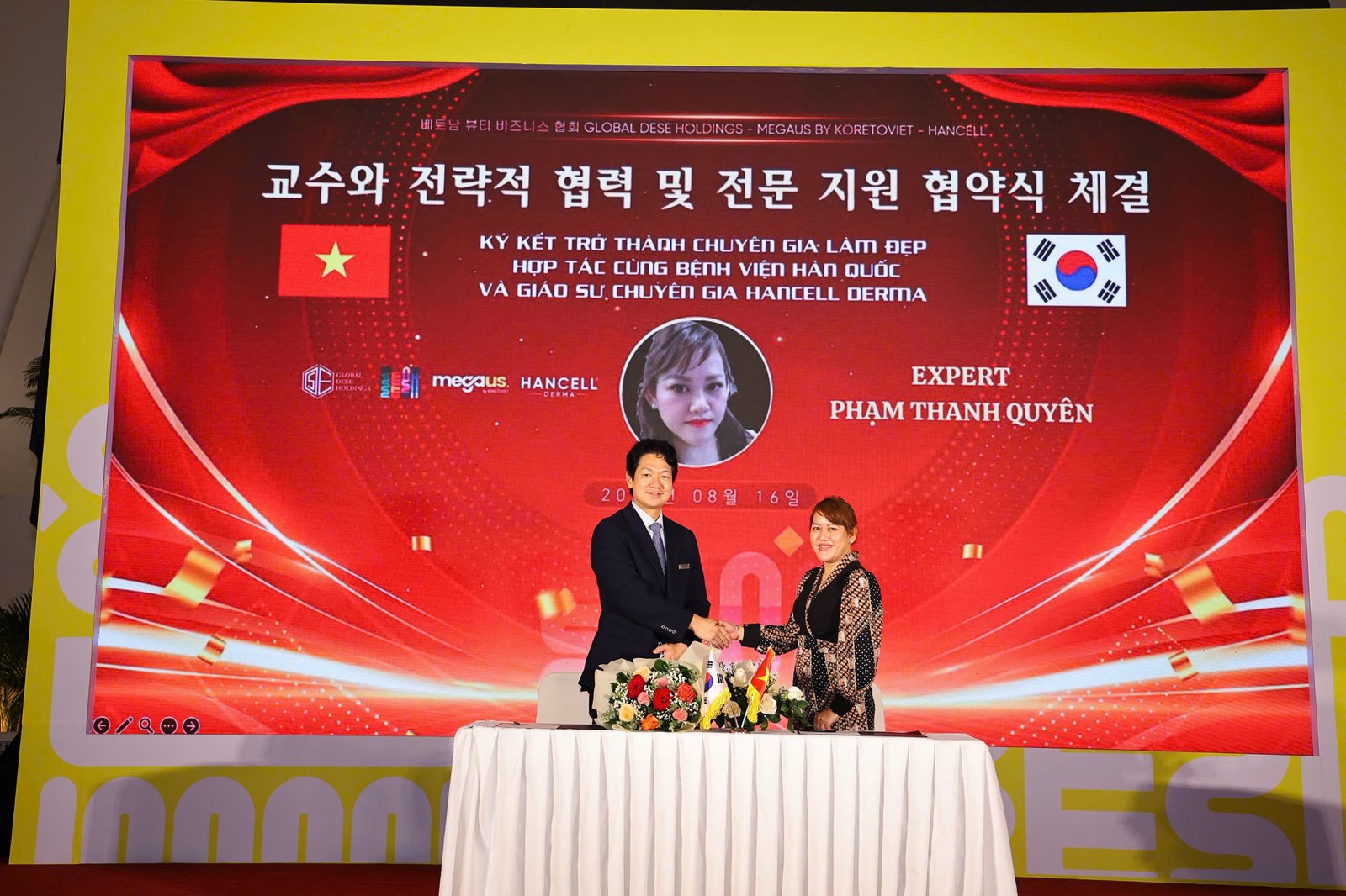 Hội Nghị Ký Kết Chuyên Gia Làm Đẹp Việt – Hàn trở thành chuyên gia của Bệnh viện Hàn Quốc và hợp tác cùng các giáo sư bác sĩ Hàn Quốc vừa được tổ chức tại Trung tâm hội nghị White Palace Phú Nhuận – TP.HCM ngày 16.08.2025.