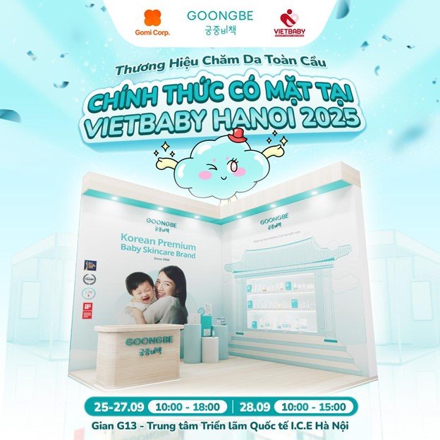 Hãy đến và khám phá vì sao Goongbe được mệnh danh là thương hiệu chăm sóc da em bé hàng đầu Hàn Quốc – và hiện đang được hàng triệu gia đình Việt Nam tin dùng. Hẹn gặp bạn tại Vietbaby Hanoi 2025!